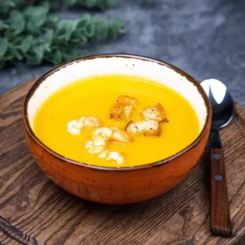 Тыква, морковь, лук, сливки, креветки, сухарики, лепёшка (400мл)