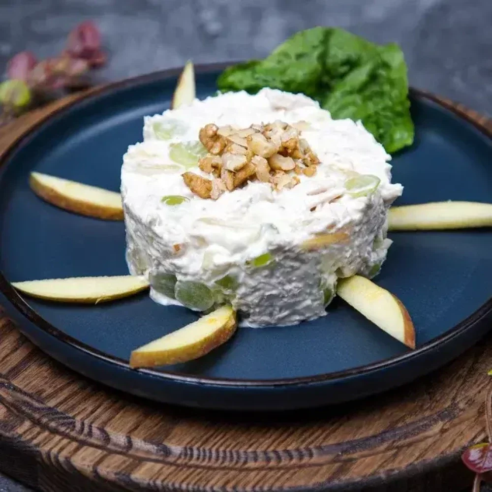 Куриная грудка, ананас, виноград, яблоко, грецкий орех, майонез (300гр)