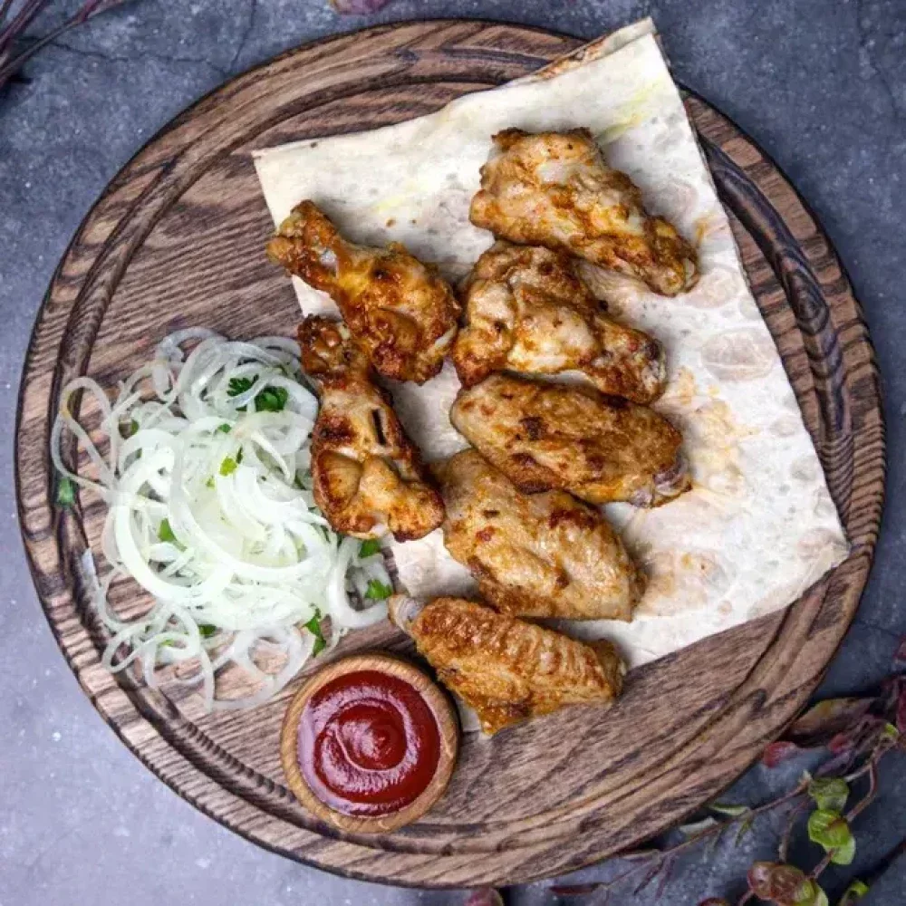 Крылышки, лаваш, лук, красный соус (300гр)без учёта прожарки