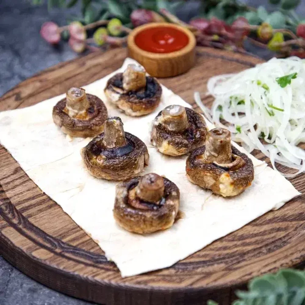 Грибы, лаваш, красный соус, лук (200гр)без учёта прожарки