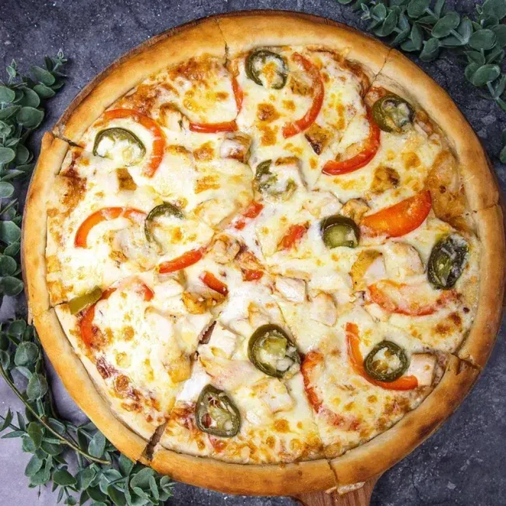Куриная грудка, болгарский перец, халапеньо, соус барбекю, сыры моцарелла и пармезан, тесто (32см)