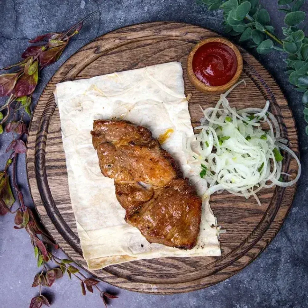 Шейка, лаваш, лук, красный соус (200гр)без учёта прожарки