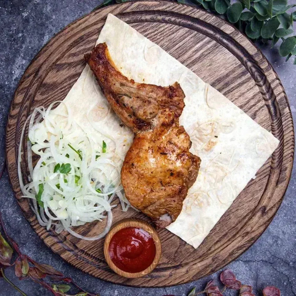Карбонад, лаваш, лук, красный соус (200гр)без учёта прожарки