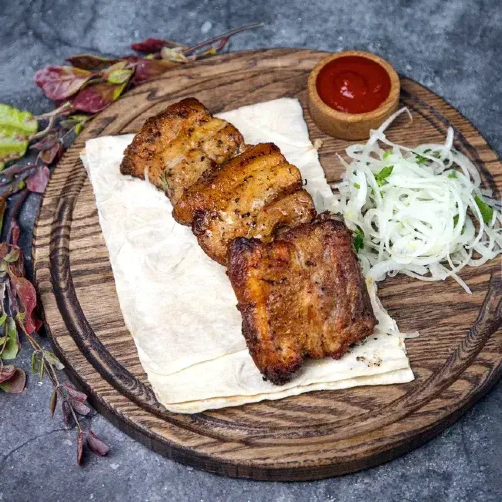 Свинина на ребре, лаваш, лук, красный соус (300гр)